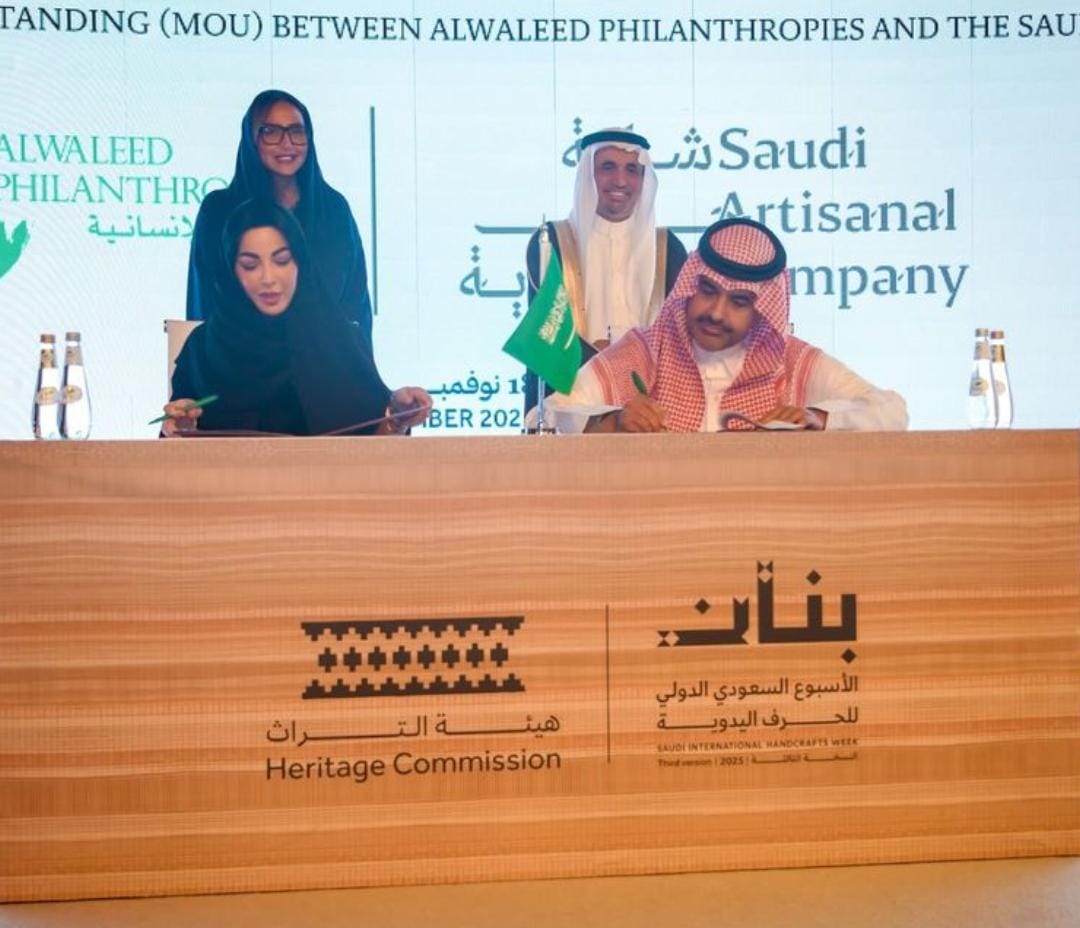 وقّعت مؤسسة الوليد للإنسانية، والتي يرأسها صاحب السمو الملكي الأمير الوليد بن طلال آل سعود، وشركة حرف السعودية، مذكرة تفاهم تهدف إلى دعم وتمكين الحرفيين السعوديين وتطوير المنتجات الحرفية المحلية عبر برامج ومبادرات مشتركة تُسهم في تحقيق الاستدامة الاجتماعية والاقتصادية، انسجامًا مع مستهدفات رؤية المملكة 2030 في دعم الصناعات الثقافية وتمكين الكفاءات الوطنية. وتنص المذكرة على التعاون في تنفيذ برامج تدريبية وتمكينية للحرفيين، وتطوير منتجات تجمع بين الأصالة والحداثة، إضافةً إلى توثيق وإبراز أعمال الحرفيين في مختلف مناطق المملكة بما يعزّز انتشار المنتجات الحرفية السعودية محليًا وعالميًا. حضر مراسم التوقيع صاحبة السمو الملكي الأميرة لمياء بنت ماجد آل سعود، الأمين العام لمؤسسة الوليد للإنسانية، والرئيس التنفيذي لهيئة التراث، الدكتور جاسر بن سليمان الحربش حيث وقعت الاتفاقية المهندسة نجلاء الجعيد، نائب للأمين العام والمدير التنفيذي للمبادرات المحلية لمؤسسة الوليد للإنسانية، والأستاذ إبراهيم بن ناصر الناصر، الرئيس التنفيذي لشركة حرف السعودية.